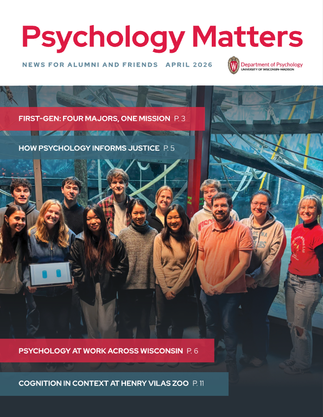 Psychology Matters offers the latest in research, education, and innovation from the Department of Psychology. Meet the Badger students, faculty, staff, and alumni working to impact and improve the world around us in each printed and emailed issue.